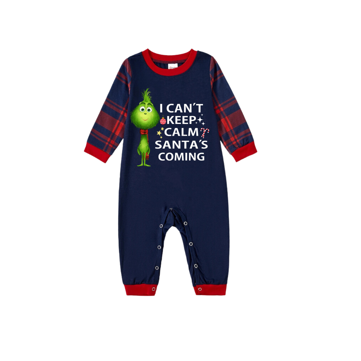 "I Can't Keep Calm, Santa's Coming" Slogan Printed Red and Blue Plaid Christmas Matching Pajamas