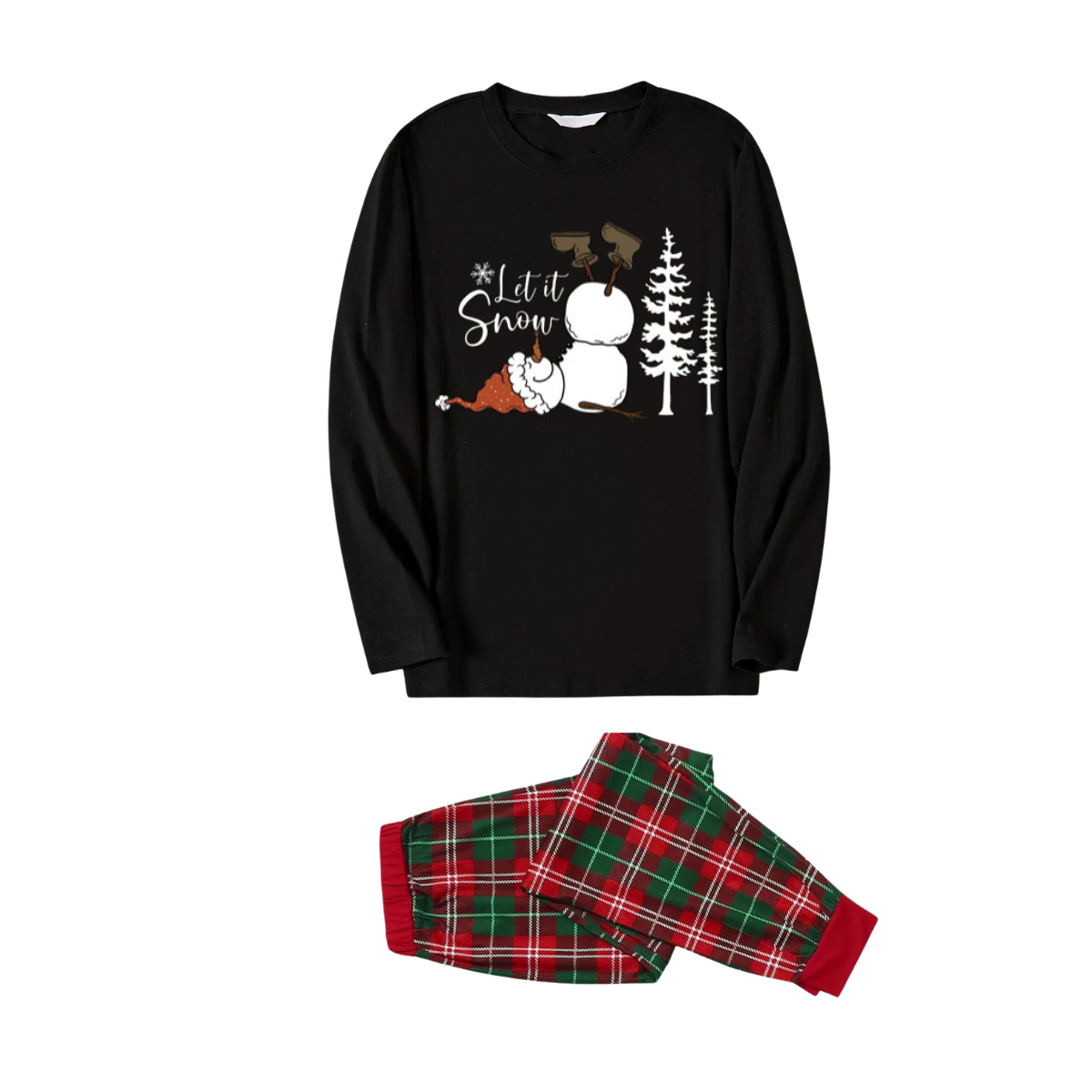 "Let it Snow" Text and Snowman Printed Red and Green Plaid Family Matching Pajamas
