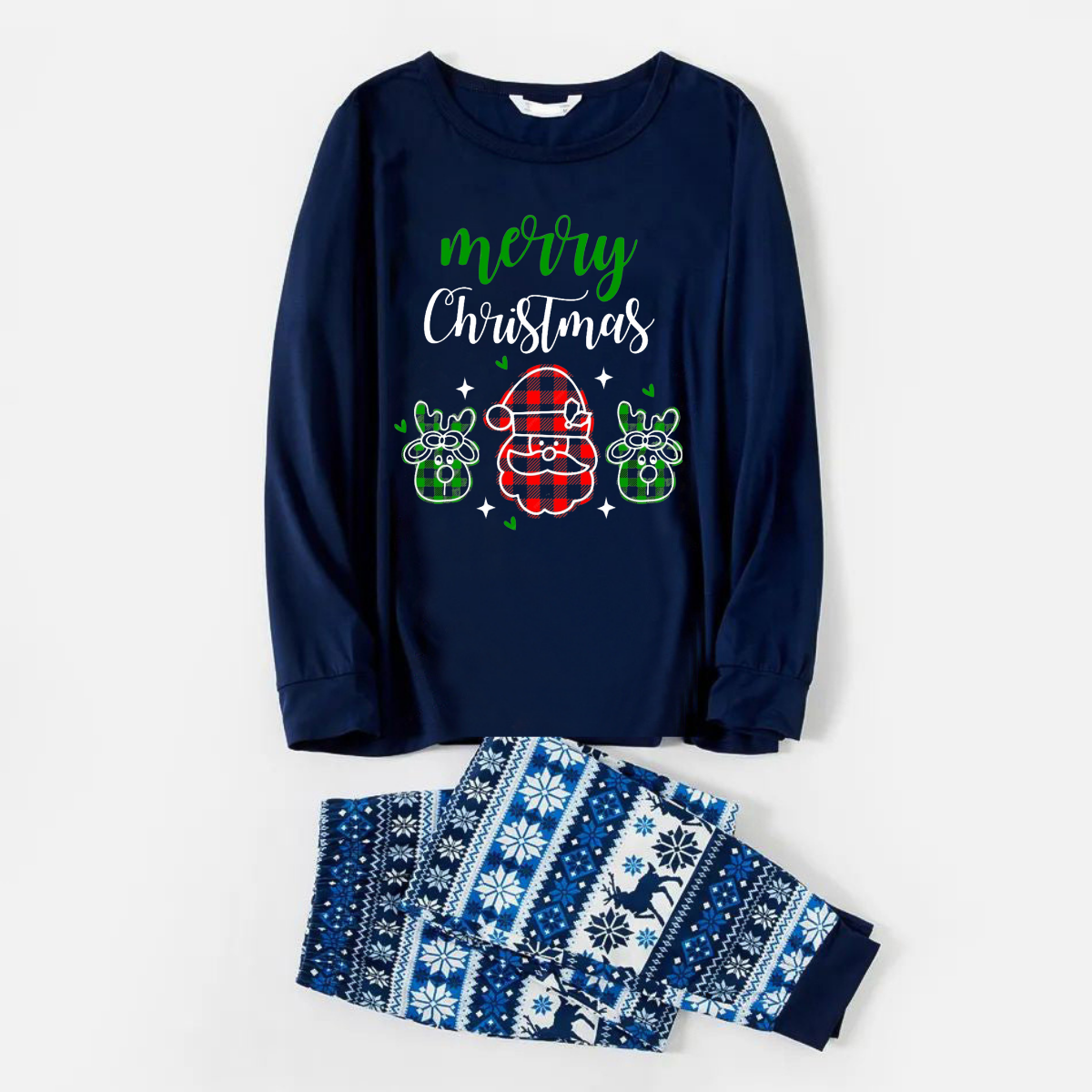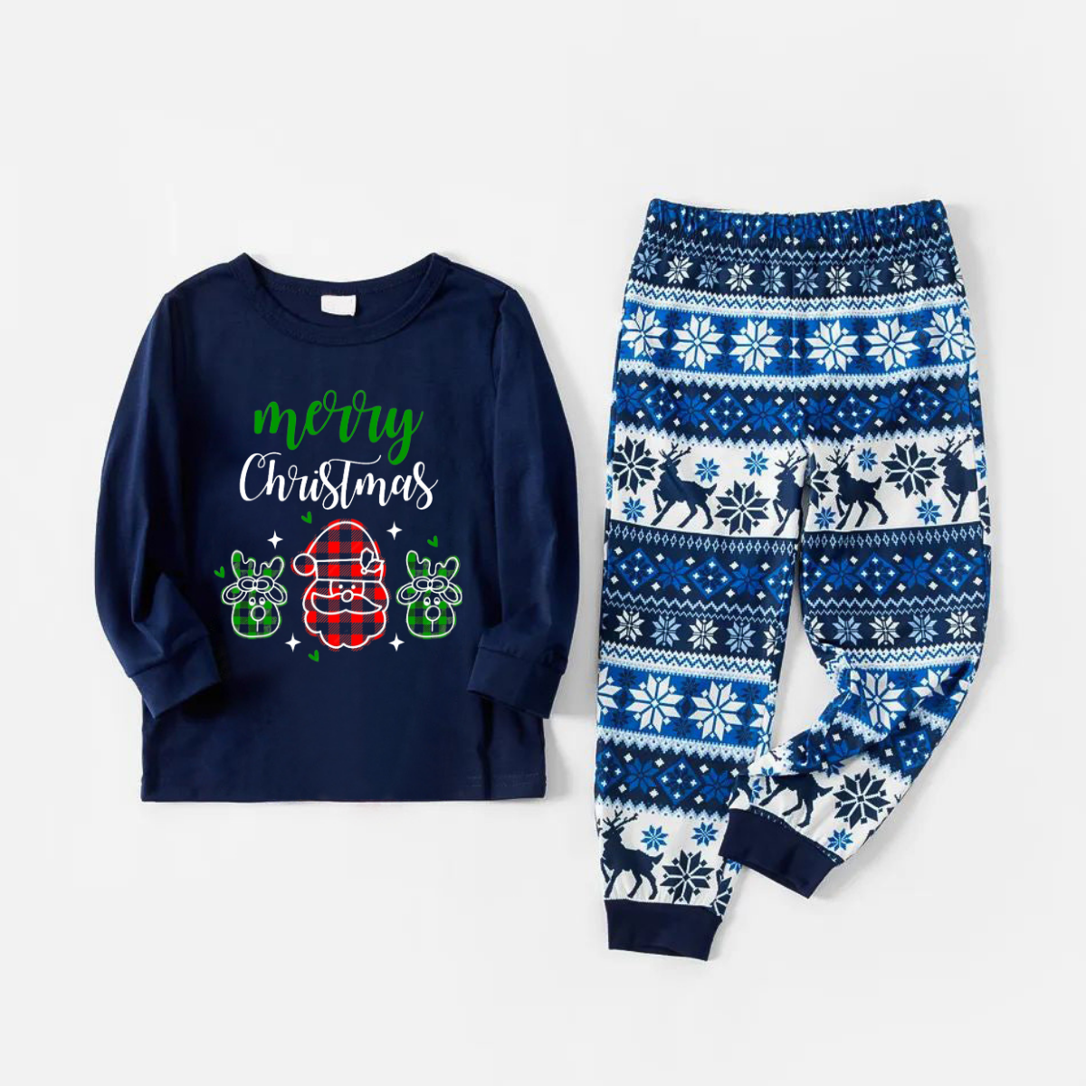 Merry Christmas Text and Santa Claus Print Blue Family Christmas Matching Pajamas