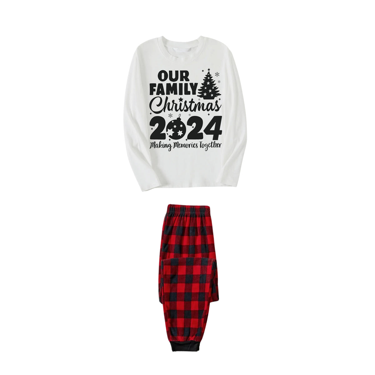 Get ready to cozy up in style with our '''Our Family Chirstmas 2024 Making Memories Together' Letter Print (Black) White Long Sleeve with Black&Red Plaid Pants Family Matching Pajamas'', perfect for the festive season. This adorable ensemble is designed for the whole family, including your beloved furry friend.