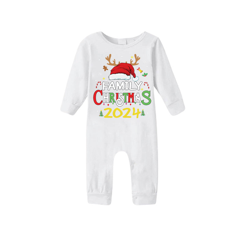 Celebrate the holidays in style with our family"Red Santa Hat "2024 Family Christmas" Monogram Print Contrast White Long Sleeve with Vintage Red&Green Plaid Pants Family Matching Pajamas". Featuring a festive green cartoon character with a Santa hat pattern on a white top with contrast black long sleeves, this set is paired with cozy green and black plaid pants. Designed for comfort and warmth, these pajamas are made from soft, breathable fabric that's perfect for festive family gatherings, holiday photos, or cozy nights at home. Bring your family together and make the season extra special with these charming matching pajamas.