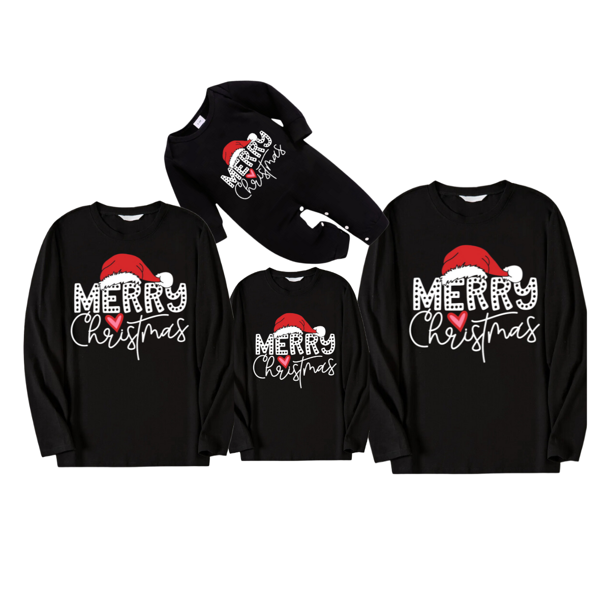 Red Santa Hat "Merry Christmas" Letter Pattern Black Long Sleeve Top