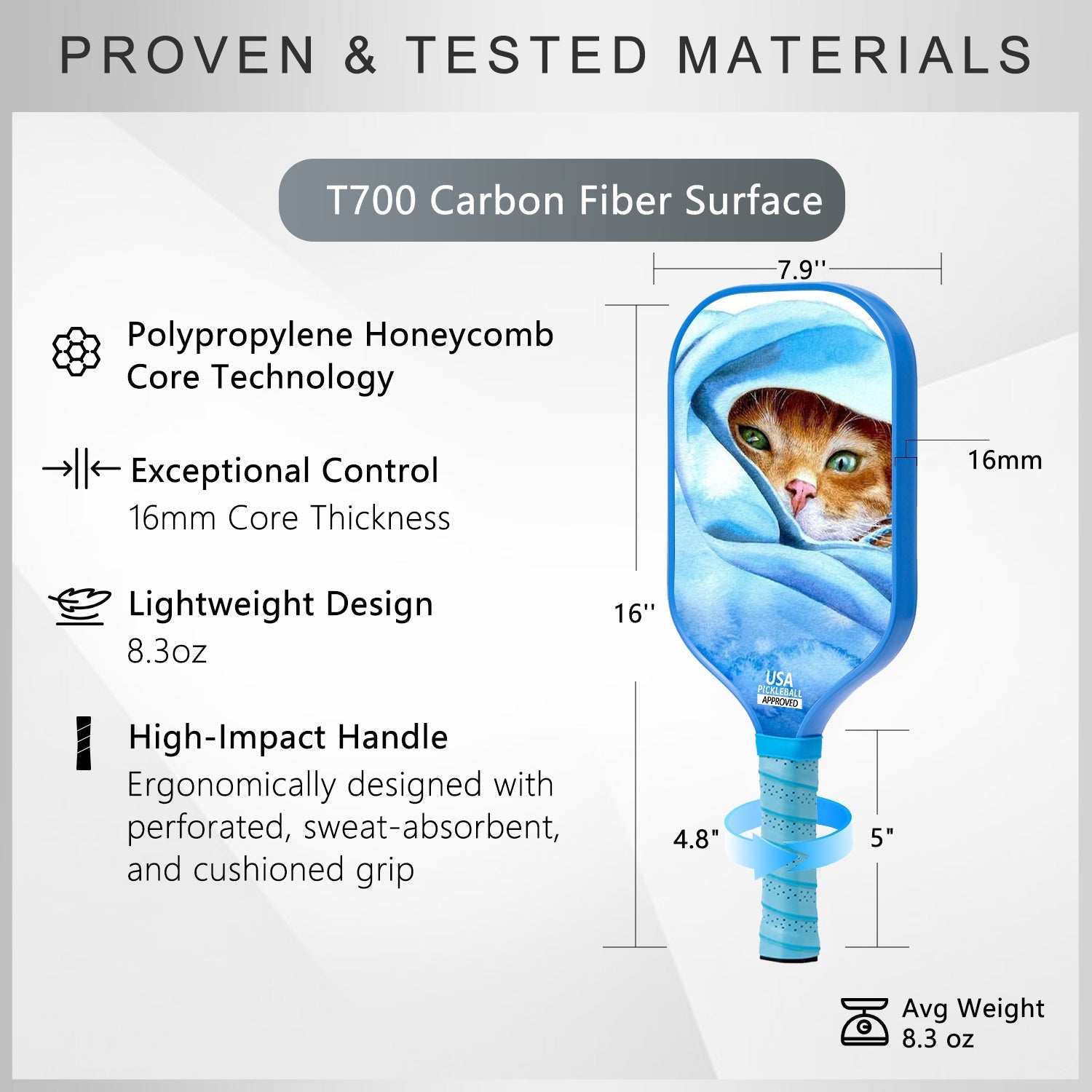 Fiberglass Paddles: Made from woven glass fibers, these paddles are typically lighter and provide a good balance of power and control. They tend to have a larger sweet spot, making them an excellent choice for beginners or recreational players who value comfort and ease of use. Fiberglass paddles also tend to be more affordable, making them a great option if you're just starting out.