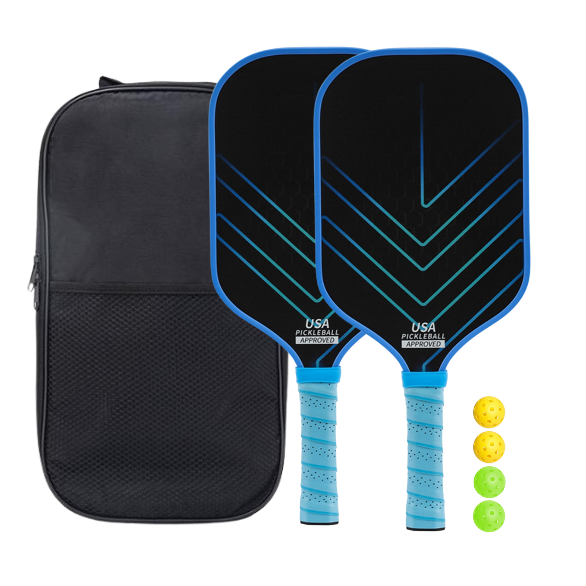 4 Pickleballs: Enjoy hours of fun with our high-quality pickleballs, specifically crafted for durability and consistent play.
