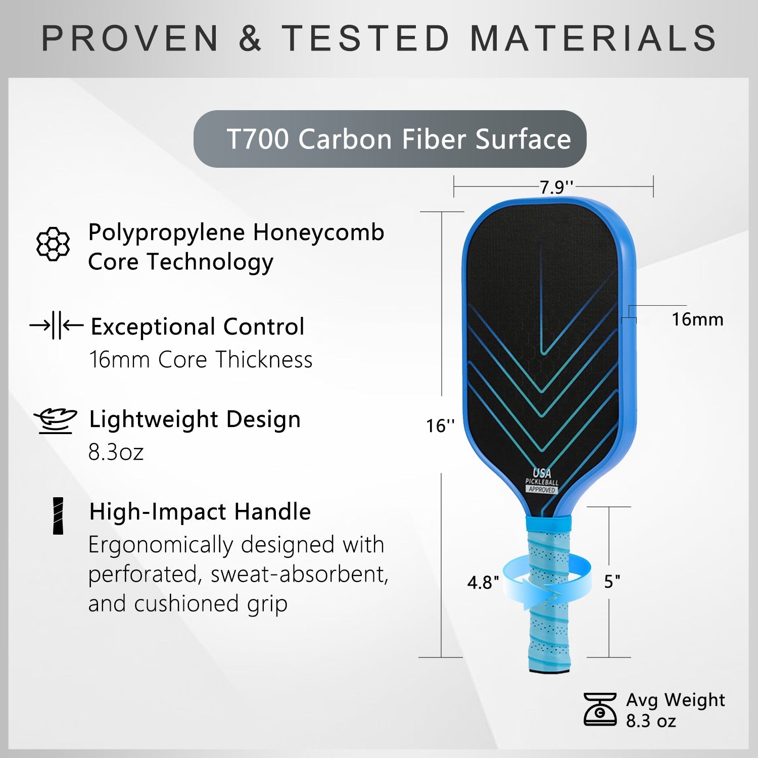 Fiberglass Paddles: Made from woven glass fibers, these paddles are typically lighter and provide a good balance of power and control. They tend to have a larger sweet spot, making them an excellent choice for beginners or recreational players who value comfort and ease of use. Fiberglass paddles also tend to be more affordable, making them a great option if you're just starting out.