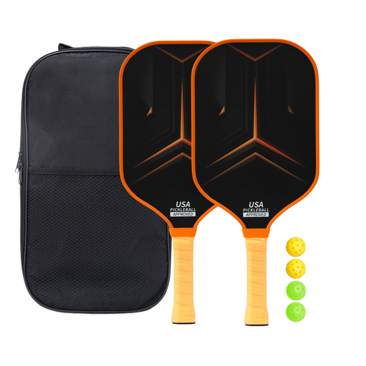 4 Pickleballs: Enjoy hours of fun with our high-quality pickleballs, specifically crafted for durability and consistent play.