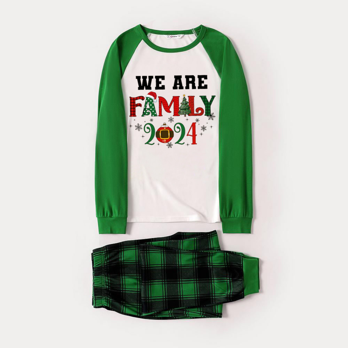 We are Family 2024 Print Long Sleeve Top With Green & Black Plaid Christmas Family Matching Pajamas