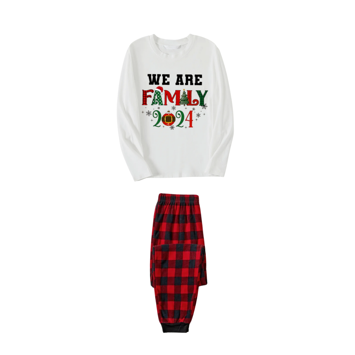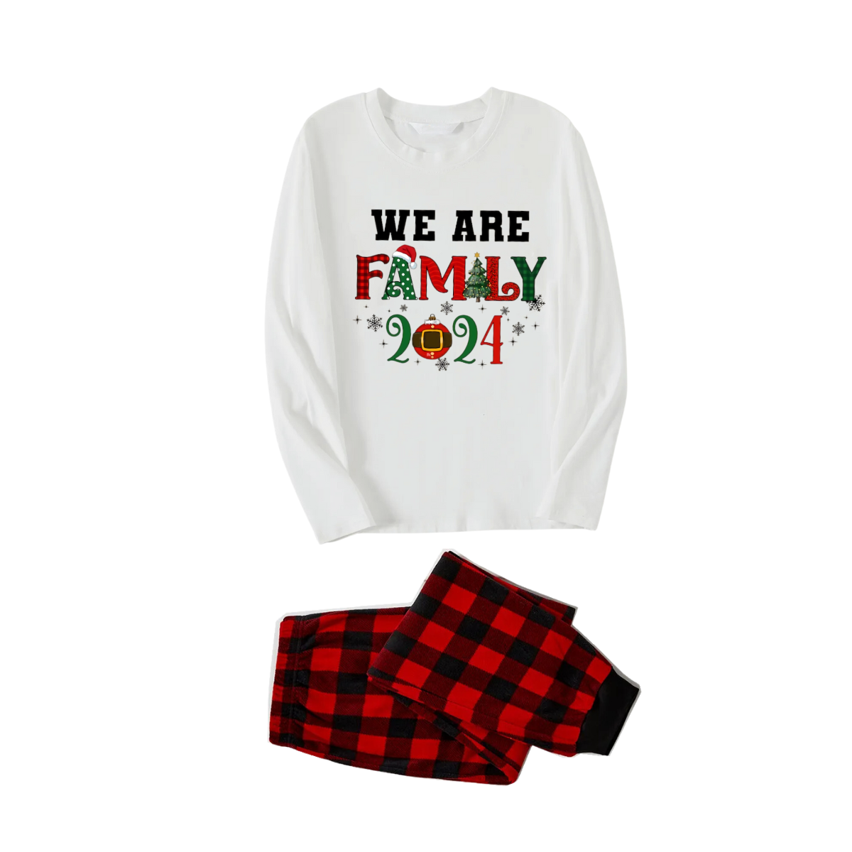 "We are Family Christmas" Christmas Pattern Printed Red and Black Plaid Family Matching Pajamas