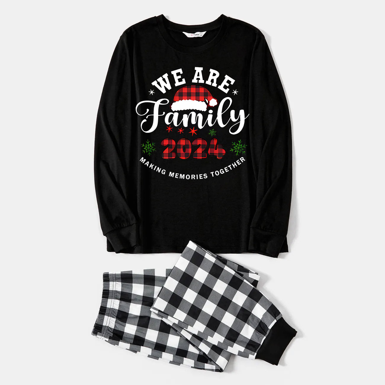 Get ready to cozy up in style with our ""2024 Family Christmas" Moose Letter Print Black Long Sleeve Top with Black And White Plaid Pants Family Matching Pajamas", perfect for the festive season. This adorable ensemble is designed for the whole family, including your beloved furry friend.